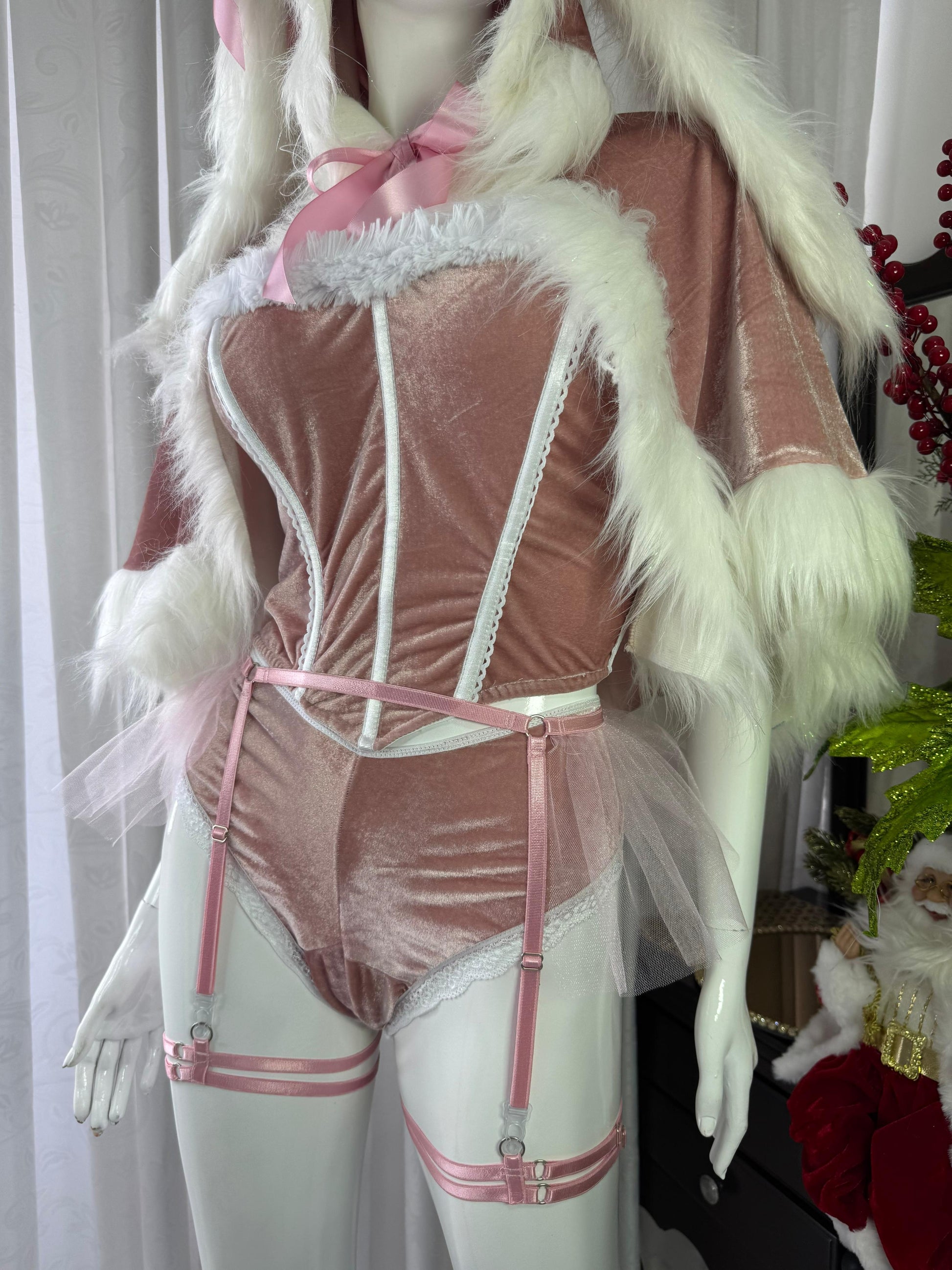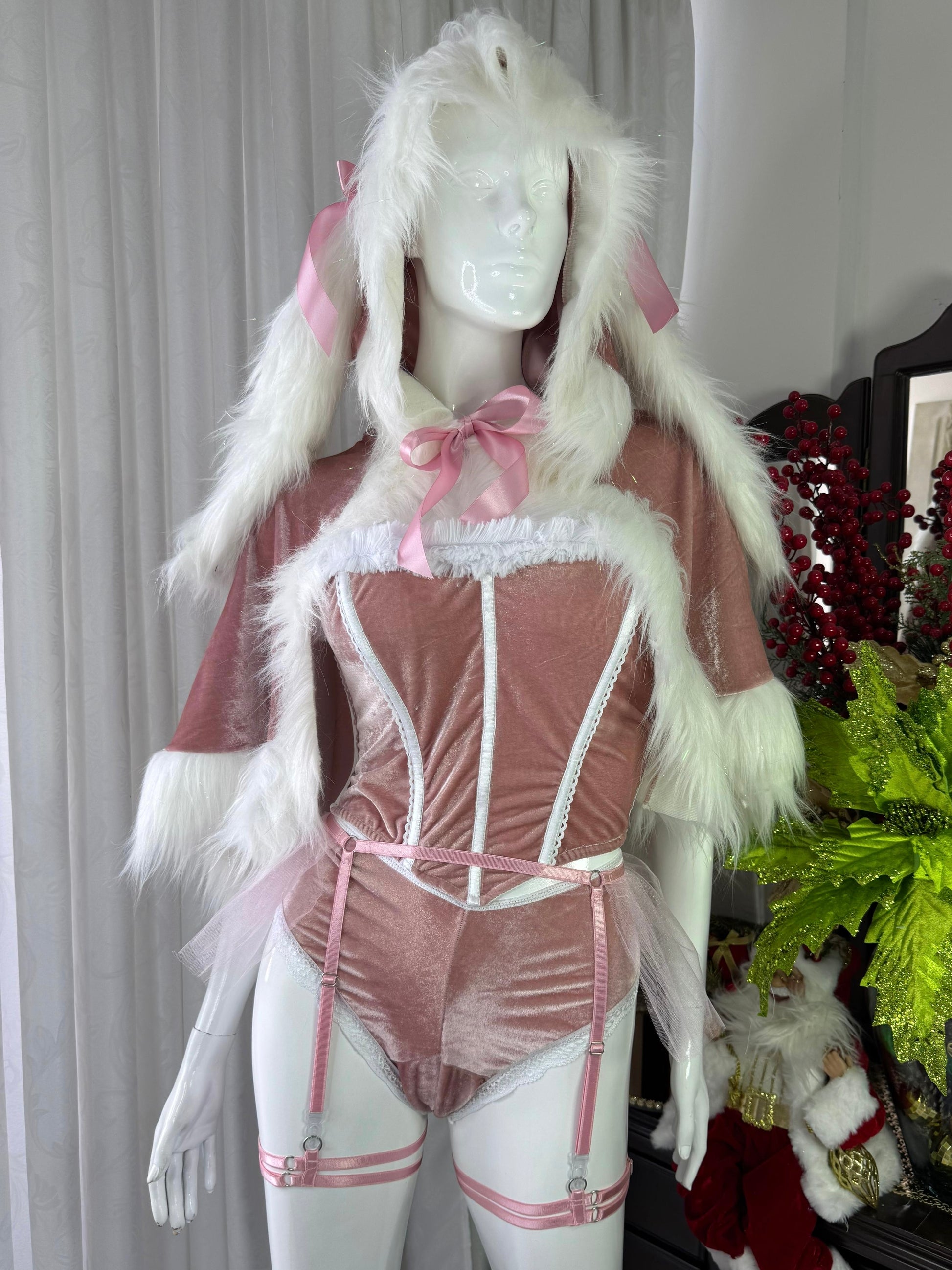 Descubre el encanto festivo de nuestro Traje Conejita Navideña, un conjunto diseñado para resaltar tu lado más tierno y sensual en esta temporada especial.